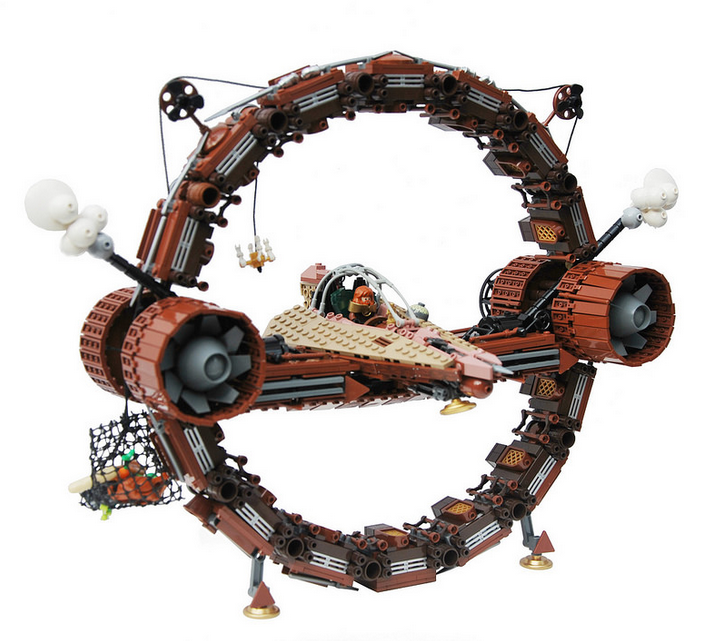 It looks like steampunk/Star Wars combo MOCs are a thing right now, as exemplified by the Steampunk Slave I I posted earlier this month. I'm a big Star Wars fan (isn't everyone, really?) and I love the greebly aesthetic of steampunk, so these models are great to my eyes. This steampunk take on Luke Skywalker's landspeeder by Âtin makes great use of propellers, grilles, and other textured and mechanical parts to convey a stripped-down, antique look that still has style. Nice build.